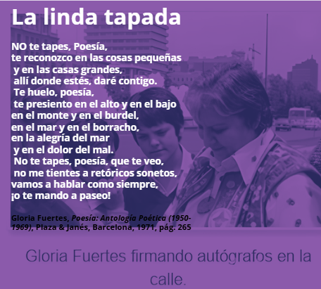 <p>Poema de Gloria Fuertes titulado «La linda tapada». El poema es característico del estilo directo y accesible de Gloria Fuertes, donde se dirige a la Poesía personificándola. En el texto, la aut...