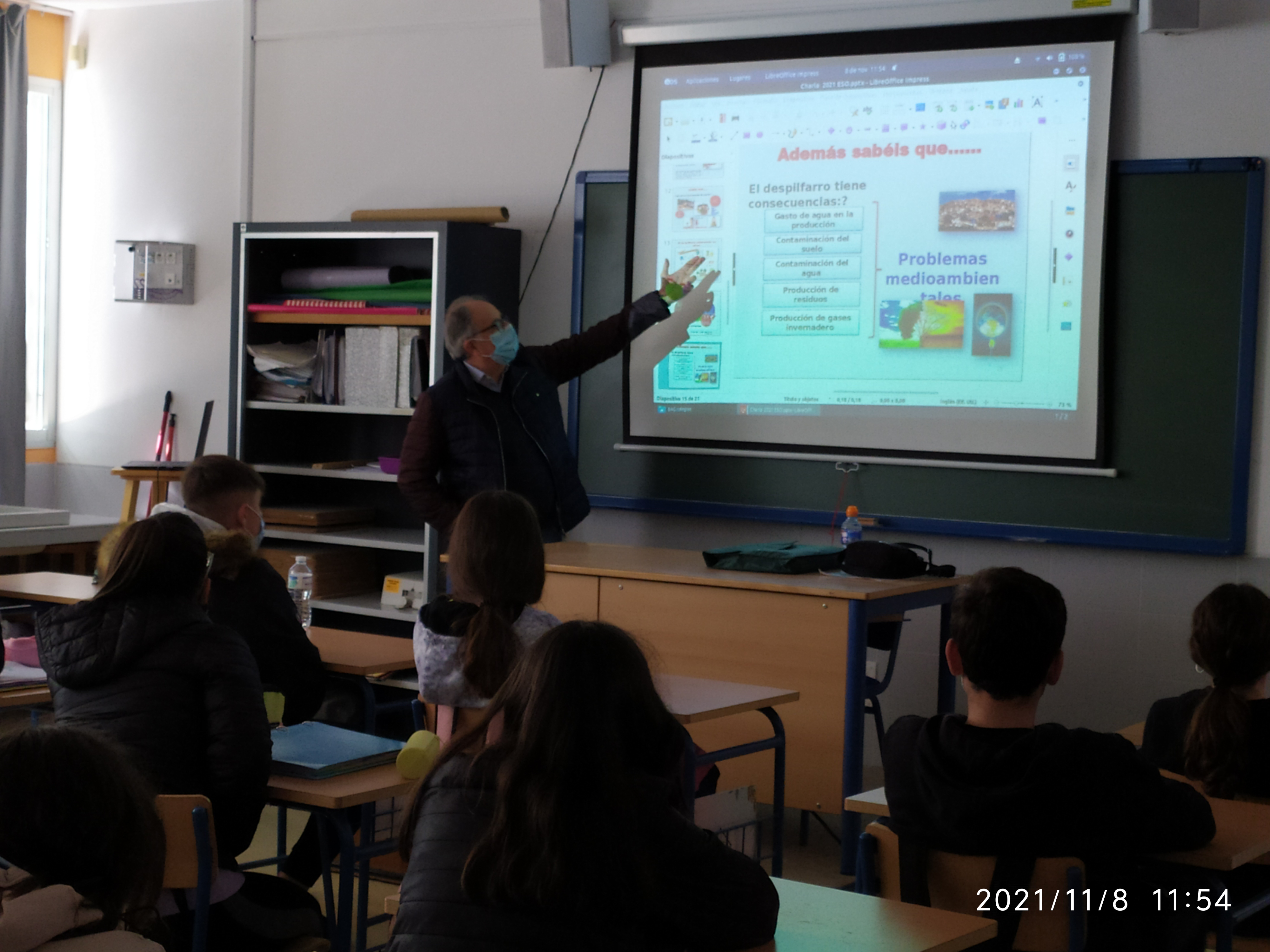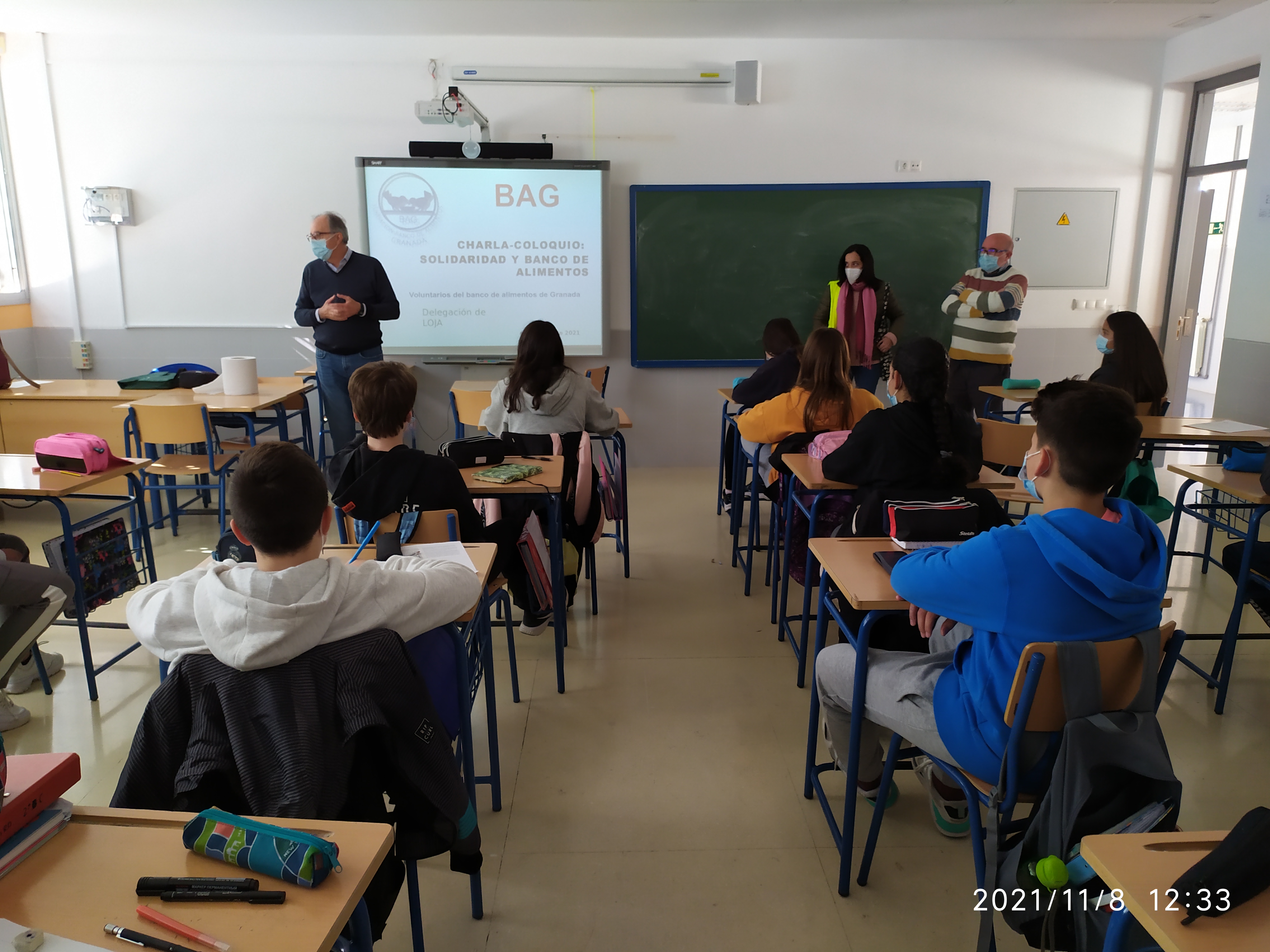 Posteriormente los alumnos de 2º de la ESO, aprendieron durante la charla ofrecida por del Banco de Alimentos de Loja a tomar conciencia sobre la gran cantidad de alimentos que desperdiciamos, que el consumismo desmesurado afecta al cambio climático y la labor que realiza el voluntariado.