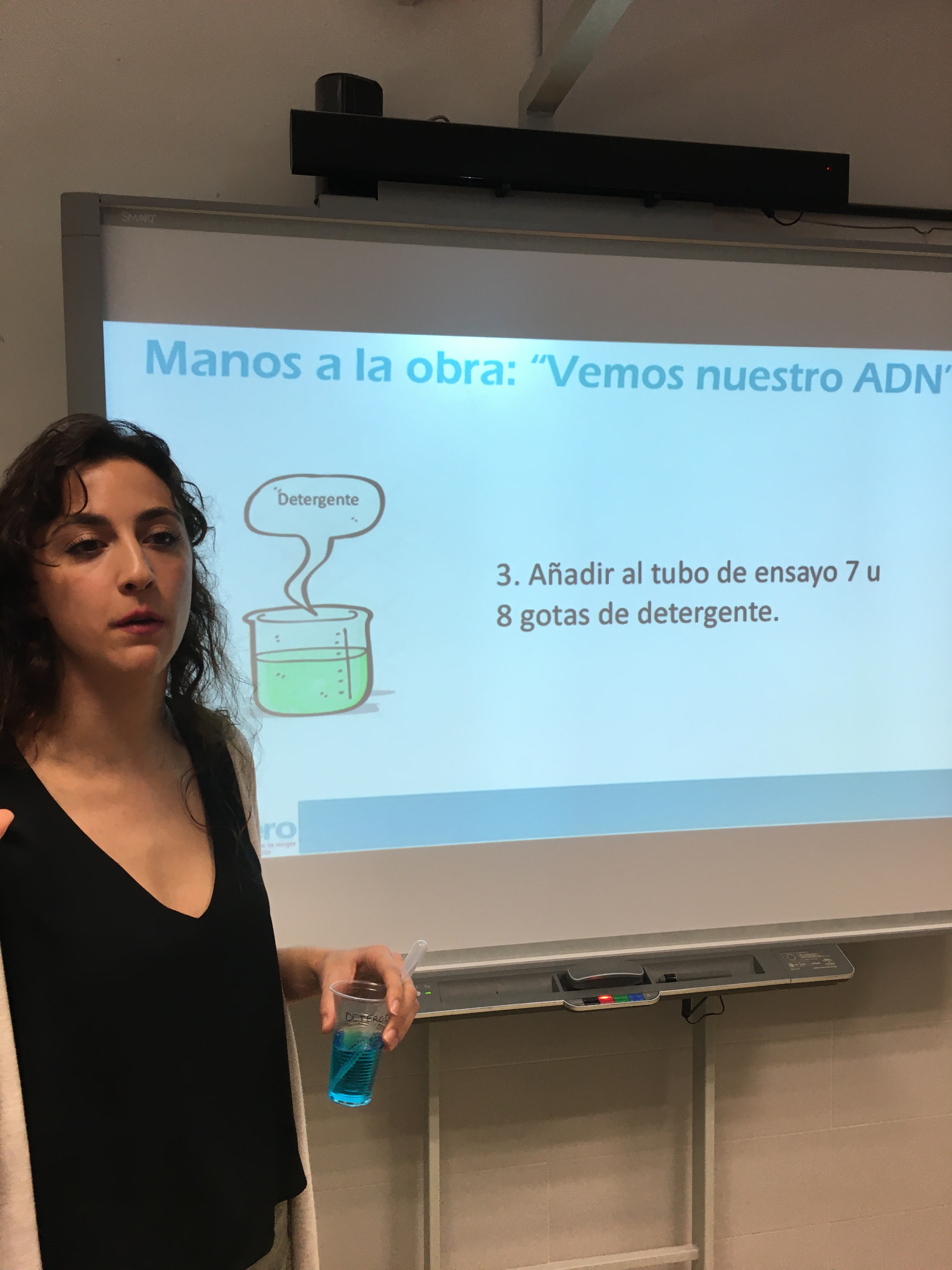 Durante la sesión las científicas Lorena y Esperanza han contado su trayectoria profesional y el alumnado ha podido realizar un taller para ver su ADN.