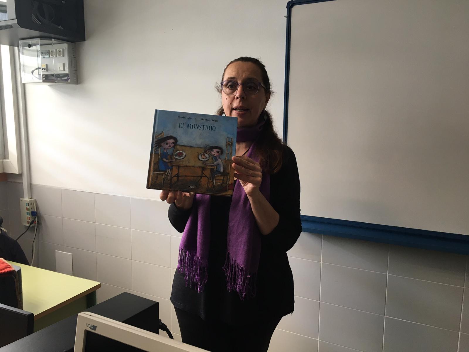 Sesión de cuentos contra la violencia de género a cargo de la narradora Inma Ruiz. El cuento estrella es "El Monstruo", escrito por Daniel Martín Castellano e ilustrado por Ramón Trigo.